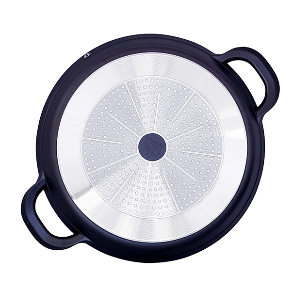 • Heavy-duty carbon-steel body with stainless-steel base for even heat and strength