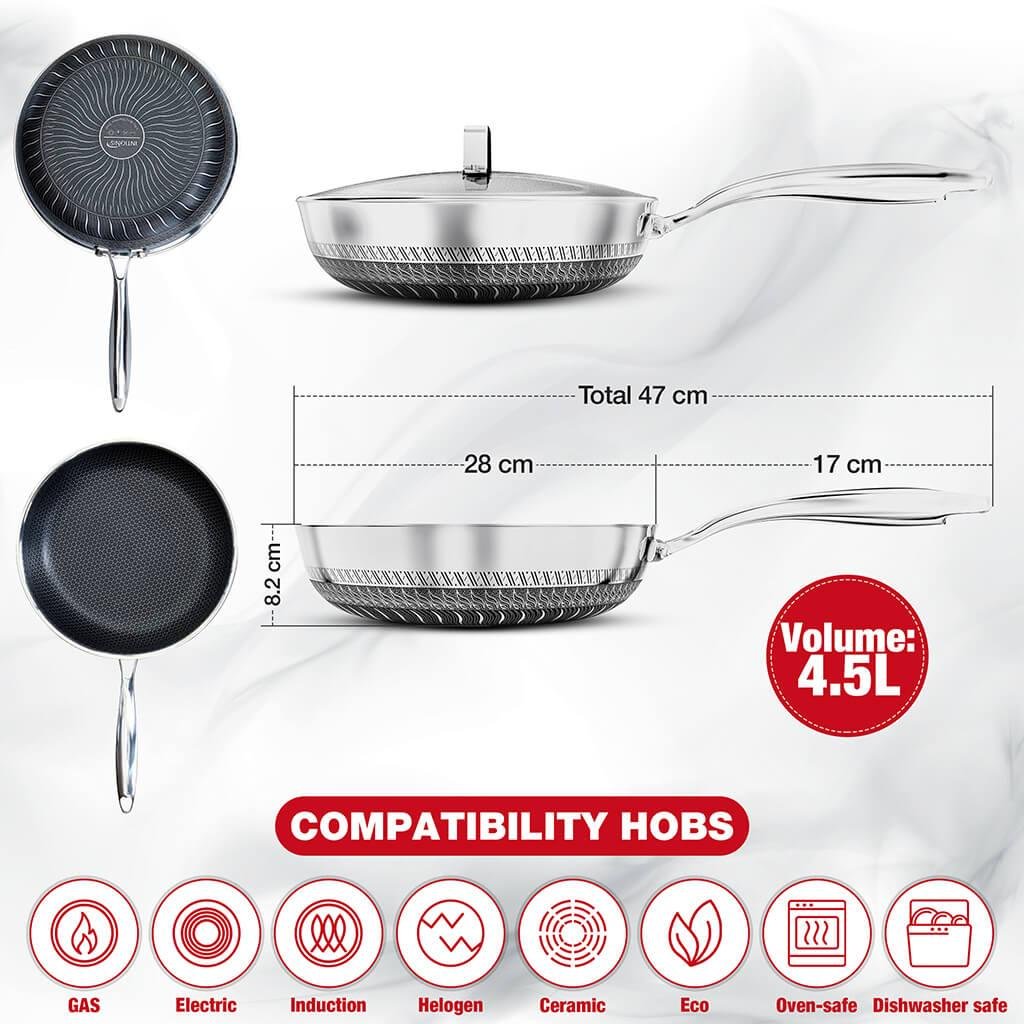 • Hybrid non-stick surface with German GREBLON® Shield Technology